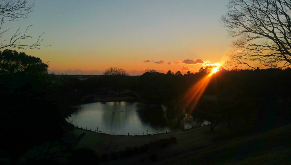 残念なことに夕陽はすぐに雲に隠れてしまった。急に辺りが、ぼんやり、という明るさに変わった。行き交う車のヘッドライトがわかり始める時間帯だ。夕方、が終わって夜が始まる。太陽が沈んで、月が見え始める。